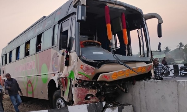 ବ୍ରିଜ୍‌ରେ ପିଟିହେଲା ତୀର୍ଥଯାତ୍ରୀ ବସ୍‌; ଡ୍ରାଇଭର ମୃତ, ୧୪ ଗୁରତର