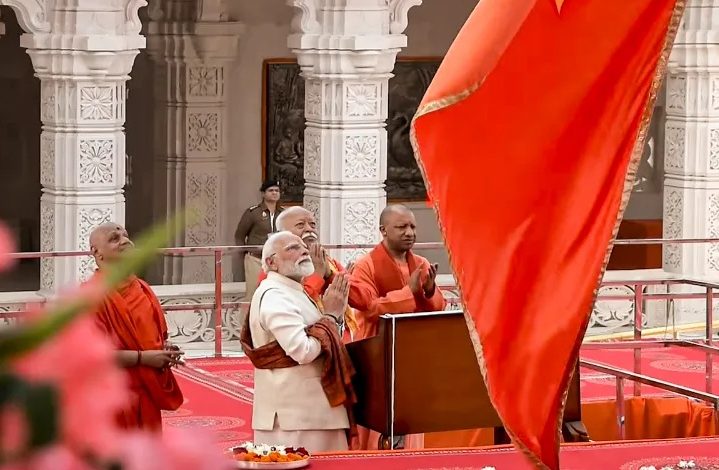 ରାମ ମନ୍ଦିରରେ ଧ୍ବଜା ଉତ୍ତୋଳନ କଲେ ପ୍ରଧାନମନ୍ତ୍ରୀ ମୋଦି