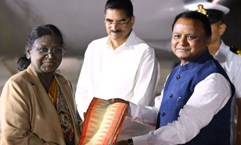 ଭୁବନେଶ୍ବରରେ ପହଞ୍ଚିଲେ ରାଷ୍ଟ୍ରପତି ଦ୍ରୌପଦୀ ମୁର୍ମୁ, ରାଜ୍ୟପାଳ ଓ ମୁଖ୍ୟମନ୍ତ୍ରୀ କଲେ ସ୍ବାଗତ