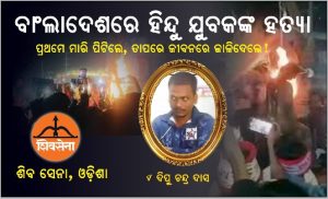 ରାଷ୍ଟ୍ରୀୟ ଗୁଲାବ ଚାନ୍ଦ ଦୁବେ ଜି ଙ୍କ ଅନୁମୋଦନ କ୍ରମେ ରାଜ୍ୟ ସଭାପତି ରୁଦ୍ର ନାରାୟଣ (ଜିତ୍ ବାବୁ) ଙ୍କ ତତ୍ୱାବଧାନରେ ଶିବ ସେନା, ଓଡିଶାର ଖୋର୍ଦ୍ଧା ଜିଲ୍ଲା ସଭାପତି ଶରତ କୁମାର ବୁଟାଡାଙ୍କ ନେତୃତ୍ୱରେ ଶିବ ସେନା ପାର୍ଟି ପରିବାରର ପଦାଧିକାରୀମାନେ ମିଳିତ ସହଯୋଗରେ ବଂଲାଦେଶରେ ଅମାନୁଷିକ ବିରୋଧରେ ଧାରଣା କରିଥିଲେ।