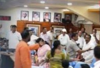 ଭୁବନେଶ୍ବର: ସିଏମସି କାଉନସିଲ ବୈଠକରେ ହଙ୍ଗାମା । ବୈଠକରେ ଖରାପ ଶବ୍ଦର ପ୍ରୟୋଗକୁ ନେଇ ତୁମୁଳକାଣ୍ଡ । ମୁହାଁମୁହିଁ ହୋଇଛନ୍ତି ବିଜେଡି ଓ ବିଜେପିର କର୍ପୋରେଟର । ଏପରିକି ମାଇକ ଭାଙ୍ଗିବା, ଫୁଲଦାନୀ ଫୋପାଡ଼ିବା ସହ ଠେଲପେଲା ହେବାଭଳି ପରିସ୍ଥିତି ଦେଖିବାକୁ ମିଳିଛି । ପରିଣାମ ସ୍ୱରୂପ କାଉନସିଲ ବୈଠକ ଅଧାରୁ ବନ୍ଦ ରହିଛି । ଉଭୟ ପକ୍ଷଙ୍କୁ ବୁଝାଇବା ଲାଗି ମେୟର ଚେଷ୍ଟା କରିଥିଲେ ସୁଧା ପରିସ୍ଥିତି ସୁଧୁରିନଥିଲା । ସୂଚନା ଥାଉକି, ଆଜି ବସିଥିଲା ସିଏମସି କାଉନସିଲ ବୈଠକ । ବୈଠକରେ ବାଲିଯାତ୍ରା ସହ ଅନେକ ପ୍ରସଙ୍ଗରେ ଆଲୋଚନା ହେବାର ଥିଲା । ତେବେ କୌଣସି କଥାକୁ ନେଇ କଥା କଟାକଟି ହୋଇଥିଲେ ବିଜେଡି ଓ ବିଜେପିର କର୍ପୋରେଟର । ଏତିକି ବେଳେ ଜଣେ ସଦସ୍ୟ ବୈଠକରେ ଅପ ଶବ୍ଦ ବ୍ୟବହାର କରିଥିଲେ । ଯାହାକୁ ନେଇ ମିଟିଂରେ ହଙ୍ଗାମା ପରିସ୍ଥିତି ହୋଇଥିଲା । ଏମିତିକି ବୈଠକରେ ଚେୟାର ବି ଉଡିଥିଲା । ପରେ ସ୍ଥିତି ନିୟନ୍ତ୍ରଣ କରିବାକୁ ମେୟର ହସ୍ତକ୍ଷେପ କରିଥିଲେ।